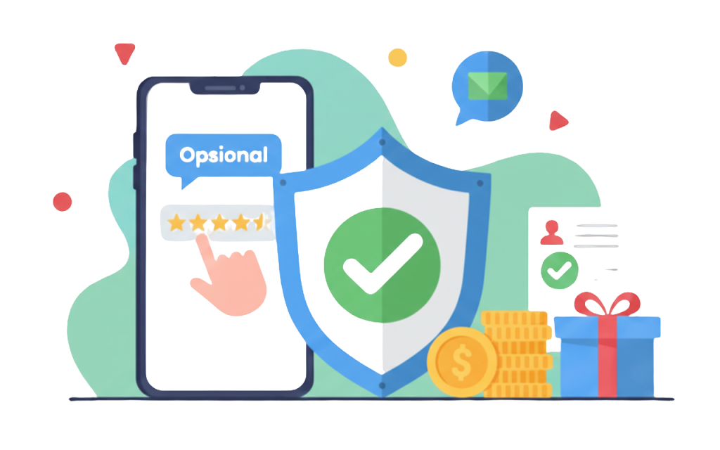 Berikan penilaian di Google Play, bagikan pengalaman kamu menggunakan aplikasi Alfamind secara jujur.